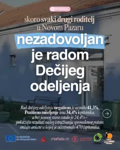 Skoro svaki drugi roditelj u Novom Pazaru nezadovoljan je radom Dečijeg odeljenja, dok je iskustvo sa Dečijim dispanzerom pozitivnije – pokazuju rezultati našeg istraživanja sprovedenog