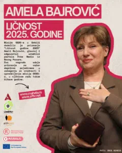 Misija OEBS-a u Srbiji dodelila je priznanje “Ličnost godine 2025“ Ameli Bajrović, glavnoj i odgovornoj urednici portala Free Media iz Novog Pazara. Ova nagrada odaje