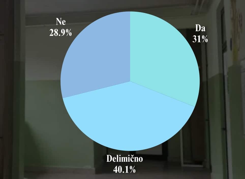 Na pitanje da li je osoblje bilo ljubazno i prijatno, tek svaki treći roditelj (31%) ima potpuno pozitivno mišljenje o ljubaznosti i profesionalnosti osoblja, dok većina (69%) ne deli taj stav.