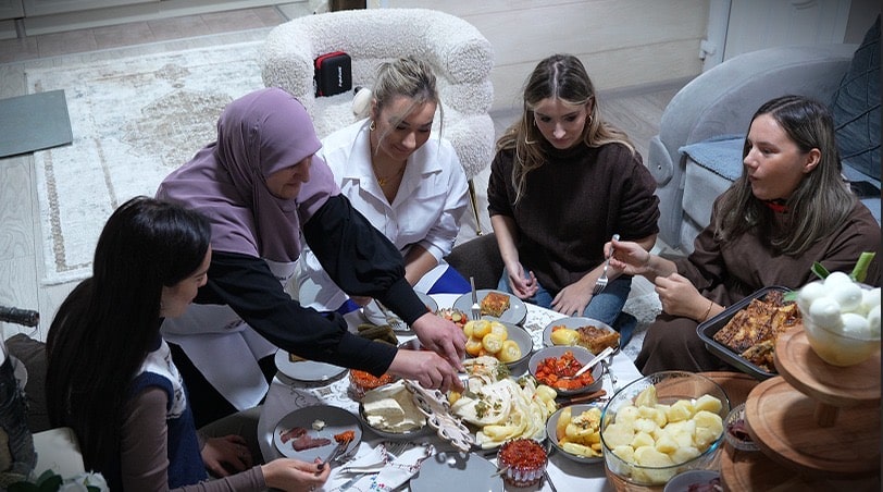 Kad smo stigle u njen dom, dočekala nas je bogata sofra – trpeza pripremljena s ljubavlju. Na stolu su se našli domaći ajvar, turšija, pekmezi, kolači, pite, proje, suhomesnati proizvodi, jedna prava gozba spremljena od strane nje i njenih bliskih prijateljica.